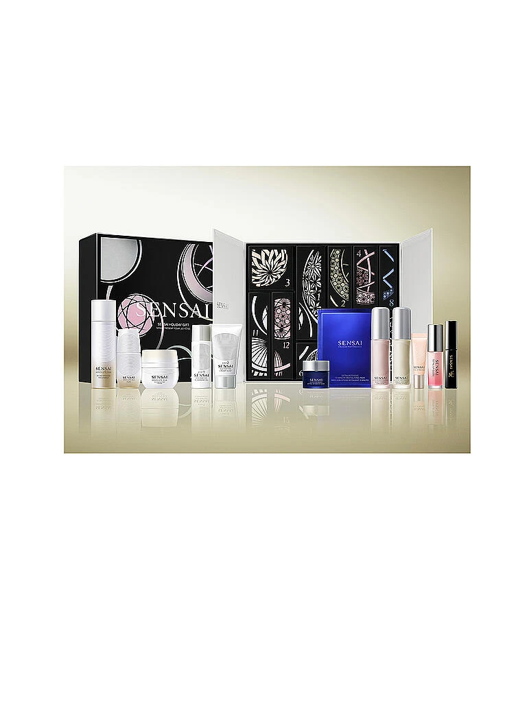 Dieses einzigartige Geschenkset ist eine Sammlung aus 12 SENSAI Lieblingen in limitierten Sondergrößen. Exklusive Kennenlerngrößen für die perfekte Reinigung und luxuriöse Gesichtspflege sowie Neuheiten und beliebte Klassiker aus dem Bereich Make-up sind in diesem Set mit seidigen Masken und Körperpflegeprodukten vereint. Die besondere Verpackung ist ein Kunstwerk aus filigranen, dreidimensionalen Scherenschnitten. Mit exquisiten Details und Designs aus der Kirie (japanischen Papierschneidekunst) wird der Betrachter sofort fasziniert.